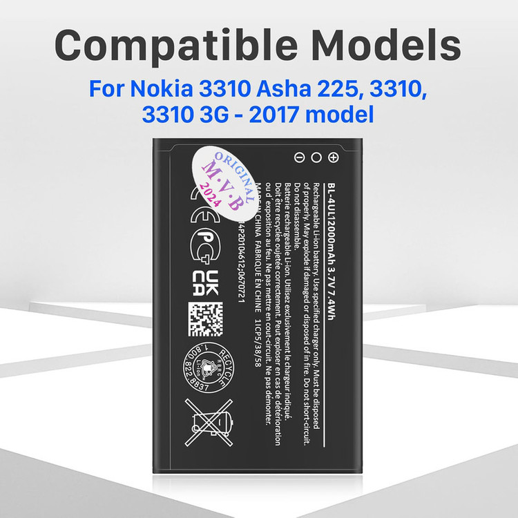باتری موبایل ام وی بی مدل BL-4UL ظرفیت 1200 میلی آمپرساعت مناسب برای گوشی موبایل نوکیا 3310 / 6310 / 225 / 230